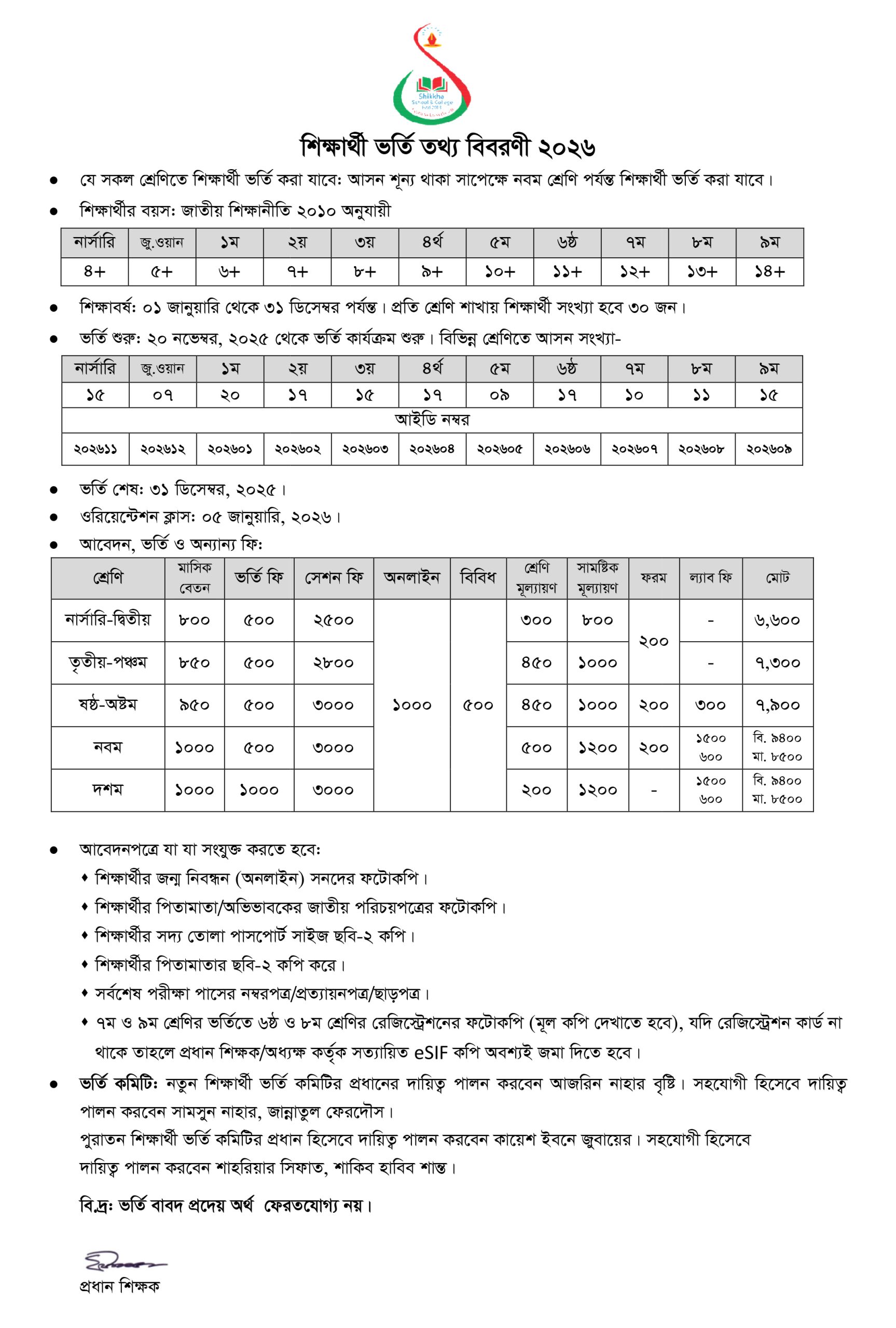 শিক্ষার্থী ভর্তি তথ্য বিবরণী ২০২৬